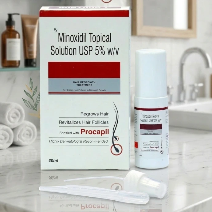 Minoxidil 5% with procapil solution, highly dermatologist recommended.